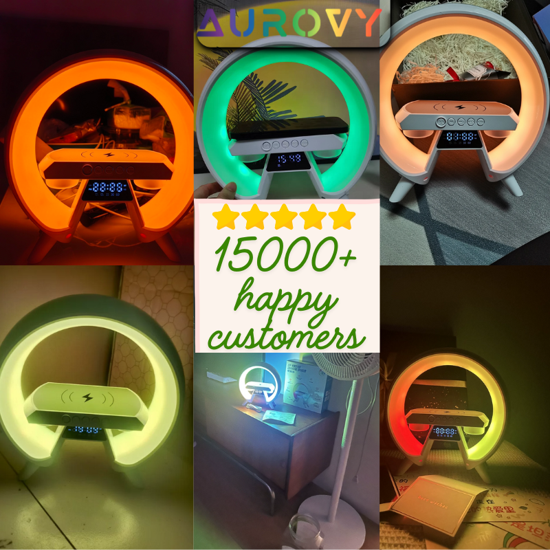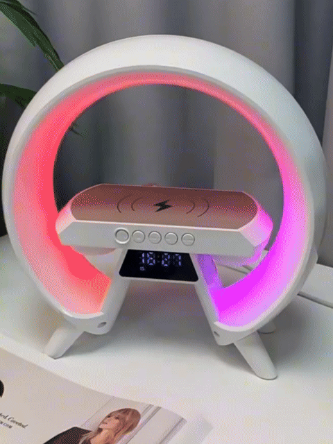 This 3-in-1 Bluetooth speaker is the perfect blend of function and style. It features dual surround-sound mini speakers, a built-in LED night light with 256 color modes, and a wireless fast-charging pad—making it ideal for both relaxation and productivity.